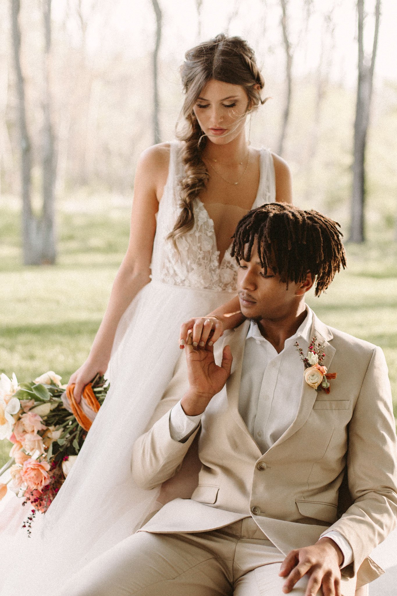 This shoot took place at a stunning modern farmhouse venue in the nearby Springfield, Ohio (an hour from Cincinnati + Columbus!). Cliffside Acres is a perfect blank canvas with all white walls and black trim. In this case, the sherbet hues were able to pop against the neutral backdrop - not to mention there’s so many amazing photo ops throughout the property and the best golden hour light. Behind the scenes of this shoot was an amazing team of vendors who brought this whole shoot to life. From the perfectly tousled braid to the fresh florals, every touch was perfection. I couldn’t be more obsessed!